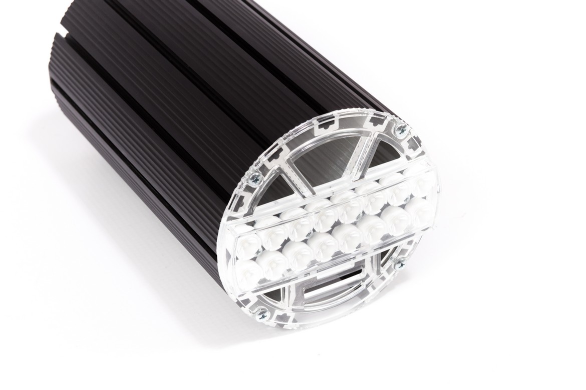Светильник X-RAY 50 Л направленного производственного освещения является младшим в семействе модульных (от одного до 6-ти пятидесяти-ваттных модулей ) подвесных светильников. Буква Л в наименовании модели указывает на наличие линз вторичной оптики. По выбору заказчика светильники выпускаются с одним из вариантов кривой силы света (КСС) — К25, Г40, Г60, Г80.
